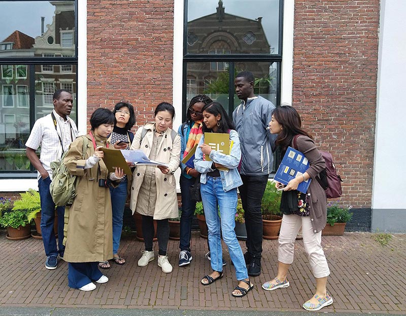 Participants of the first Humanities Across Borders summer school, “Reading Leiden,” explore the built structures of the old city. (Photo courtesy of Cheryl Jacob, 2017)