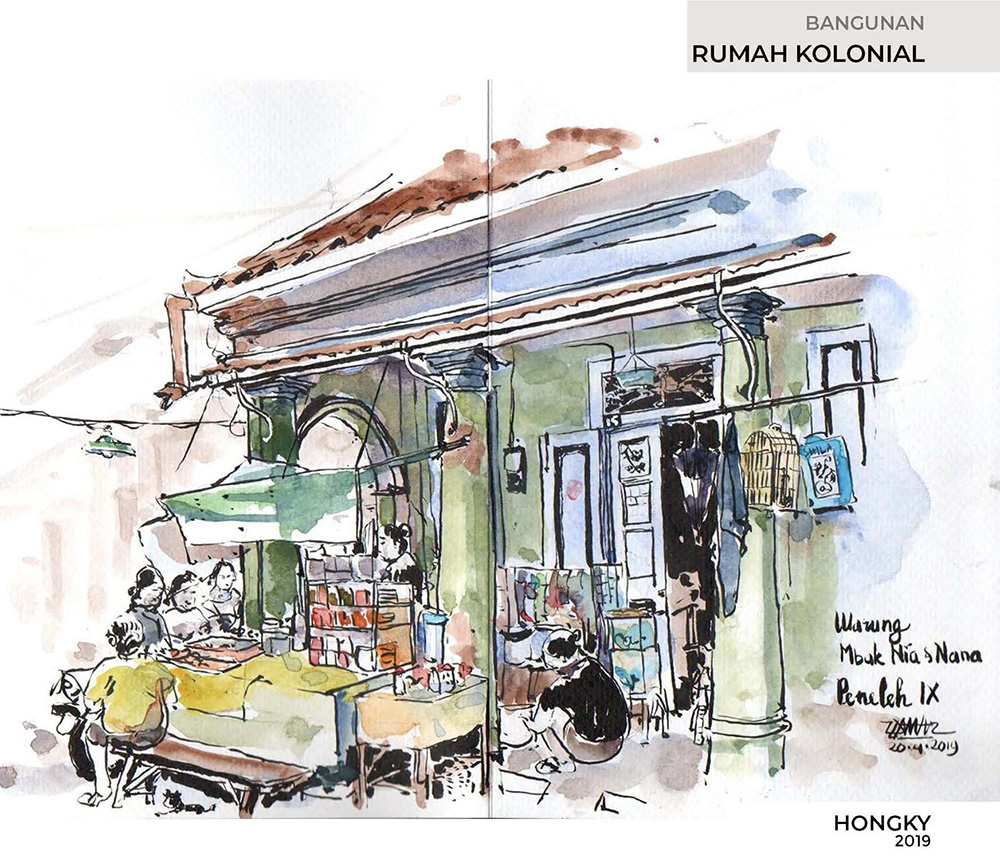 A local meeting place at a heritage house in Kampung Peneleh, Surabaya. (Sketch by Hongky Zein, Urb an Sketchers Surabaya, 2019)