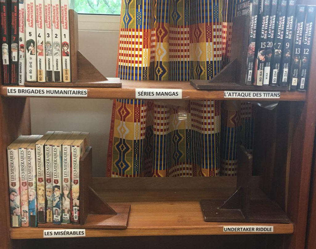 Fig. 3: Shelf of mangas at the Lycée Francais de Lomé’s library. (Photo by the author, 2024)