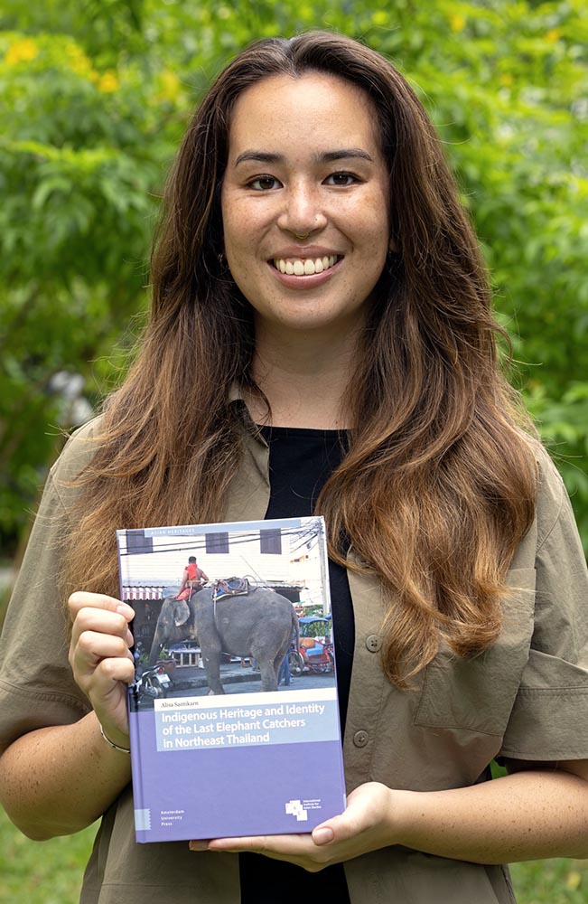 Fig. 3: Alisa Santikarn with her book Indigenous Heritage and Identity of the Last Elephant Catchers in Northeast Thailand. (Photograph courtesy of Alisa Santikarn, 2025)