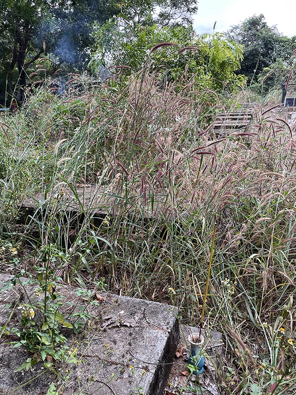 The second consideration that I want to propose here is to think of the cemetery not only in terms of what it was previously, but also in terms of what it is now, namely a potential living archive of the legacies of the Republic of Vietnam in contemporary Vietnam itself. My field research trips to the cemetery have attuned me to the layered material culture of the place. The cemetery has undergone many changes since the end of the war. Many blog posts, newspaper articles, and other reporting written by members of the diasporic Vietnamese community have lamented the decrepit state of the cemetery compared to what it used to be, with overgrown trees, weeds, and the deterioration of many graves [Fig. 5]. At the same time, families, volunteer groups, and diasporic Vietnam veteran organisations have undertaken efforts to restore the cemetery and commemorate the fallen. If one approaches the cemetery as a living archive, one can see how its material culture and the natural environment contain narratives and physical traces of violence, but also of restoration and regeneration.