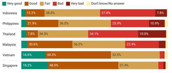 Fig. 2. Southeast Asian Youth Perception of Country’s National Economy (Source: ISEAS – Yusof Ishak Institute, Youth and Civic Engagement in Southeast Asia Survey, 2024.)